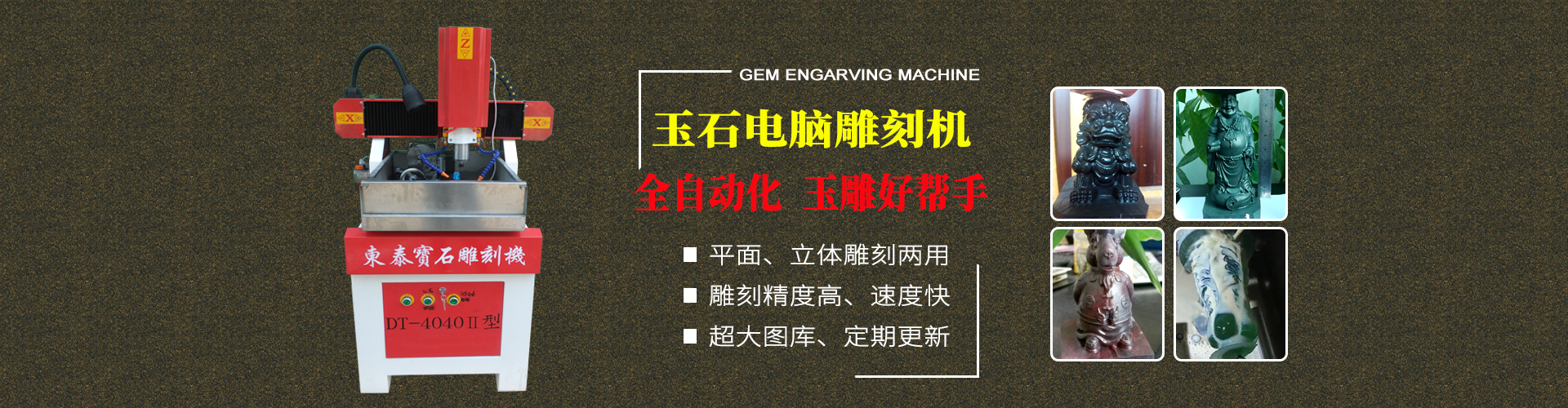 東泰生產(chǎn)出的寶石機(jī)械設(shè)備可用于加工晶體雜石、瑪瑙玉石、人造石、其他石類(lèi)及貝殼、骨頭化石等等,加工出的產(chǎn)品孔位精確、損耗小、速度快、效率高;雕刻品細(xì)致、精美,大大降低了成本,提高了效率,深受寶石行業(yè)商家的歡迎。